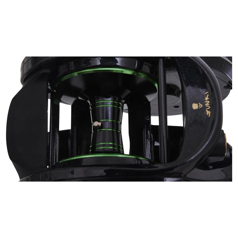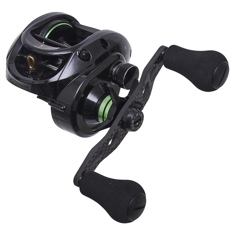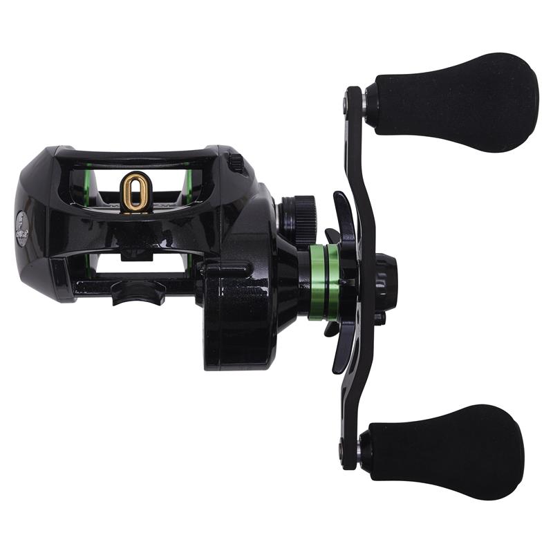 Deze baitcasting-molen is een 'big bait'-model met een « low profile »-design, waarvan de compactheid zorgt voor een uitstekende grip. Zijn ratio (7.3/1 pour une récupération de 80cm/tmv)) is bestudeerd om de juiste snelheid aan uw kunstaas mee te geven afhankelijk van de gebruikte techniek: big bait, swimbait, jerks en alle benaderingen in 'cranking'. Duurzaam en krachtig (monobloc aluminiumbehuizing, meerplatenrem met koolstofschijven met een remkracht van 9kg). Toch blijft hij vrij licht voor een model in zijn categorie. Hij is ontworpen voor de jacht op de grootste snoeken en past perfect bij onze hengels chooten cut c235xxhet c245 xxxh. Koolstofslinger (links) met handgrepen « suregrip » in EVA, breed en comfortabel. Spoel met grote capaciteit, ontworpen met een nok waarmee u uw gevlochten lijn stevig en eenvoudig kunt vastzetten. De capaciteit is geschikt om gevlochten lijnen van grote diameter te herbergen. Krachtbereik : kunstaas 40-180g. Ring « memory line » ter hoogte van de slinger om u het diameter van de gevlochten lijn die is opgewerkt te herinneren.