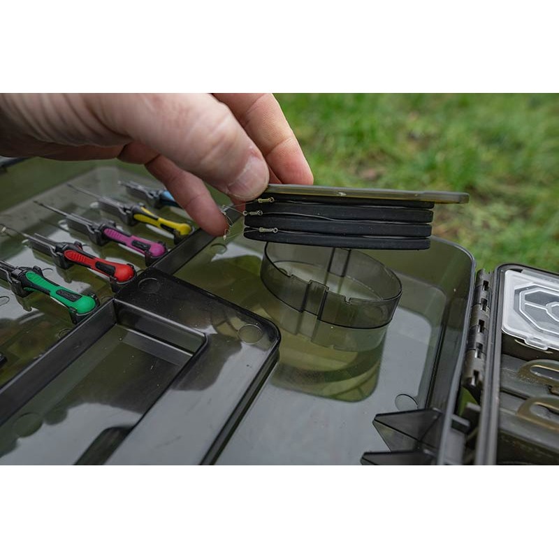 een totale viskist xl ! uw ideale metgezel aan de waterkant, om al uw accessoires, gereedschap en montages in één en dezelfde super stevige doos op te bergen. we hebben de blox zorgvuldig gedimensioneerd zodat ze de essentiële tackle-onderdelen kan bevatten, zoals draadspoelen, verpakkingen met haken en accessoires. de naalden, de onthaker en de schaar passen perfect in hun aangewezen vakjes, terwijl het hoofdcompartiment met verdelers kan worden aangepast om aan uw behoeften te voldoen. het deksel herbergt ook twee ondiepe rig blox, die alle onderlijnen tegen het weer beschermen. de doos is uitgerust met een duurzame draagriem, een zijhandgreep, beveiligingsclips en een afdichtring. een meetlat is ook inbegrepen.