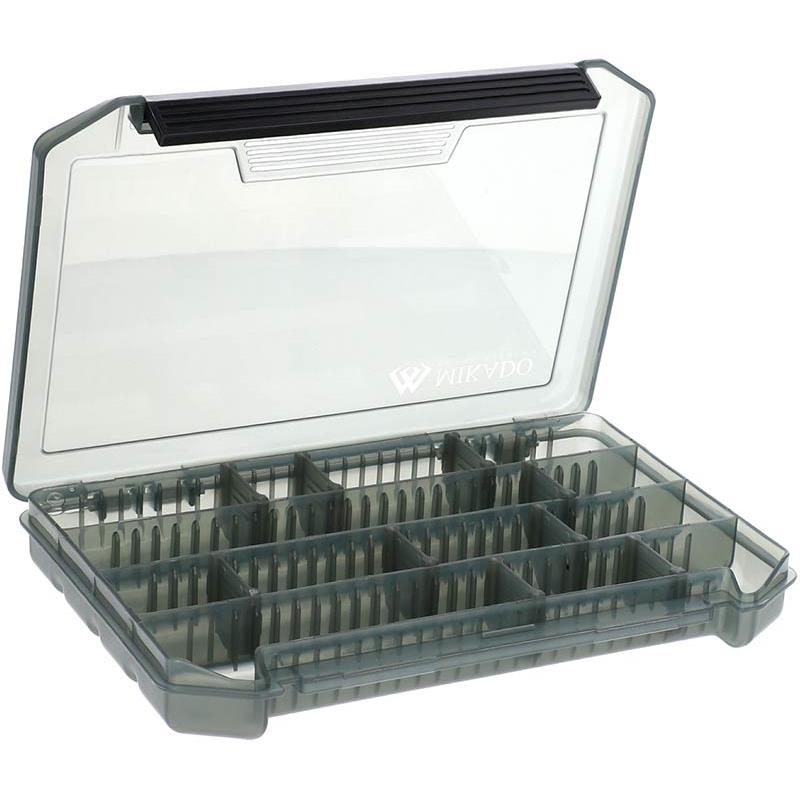 hoogwaardige doos voor kunstaas, kleur zwart, ondiep, met verstelbare vakken, perfect om kunstaas en kleine accessoires op te bergen.