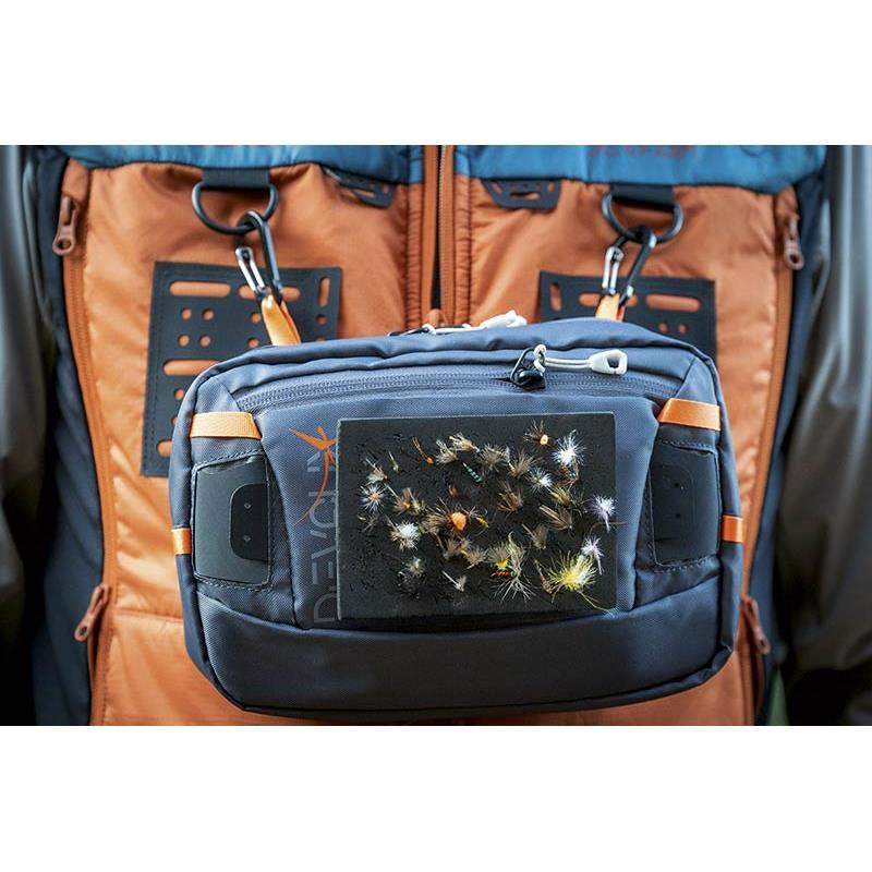 De TREK'FLY jas is uitgerust met: • Centrale SBS-ritssluiting • 2 lange zijzakken en verticale ventilatieopeningen van 35 cm met een SBS-rits aan beide zijden • 1 binnenzak van mesh • 2 ringen om accessoires of de CHEST PACK ESCAPAD te bevestigen • 2 HYPALONS aan de voorkant om kleine snijgereedschappen te bevestigen, met een magneet om te voorkomen dat gereedschappen slingeren. • 1 HYPALON boven elk schouderblad om accessoires te bevestigen... met een magneet om te voorkomen dat gereedschappen slingeren • 1 HYPALON aan elke kant van de ZIP op de borst, om de nieuwe POCK'SYSTEM 100 en 200 zakken te bevestigen die optioneel zijn (Pagina 20) • 1 ring in de kraag om een visnet te bevestigen