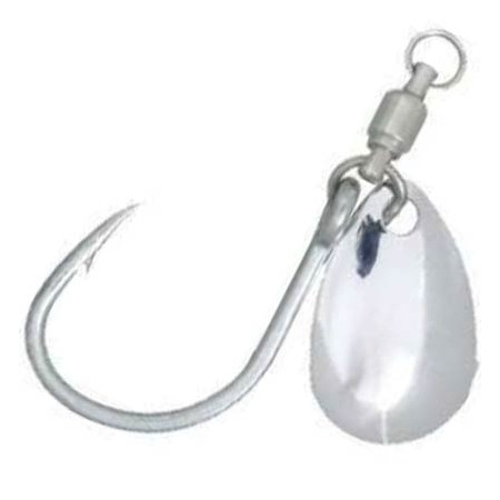 Vervanghaak voor jigs, gemonteerd op een gesoldeerde ring met een wartel met kogellagers en uitgerust met een Indiana-blad.