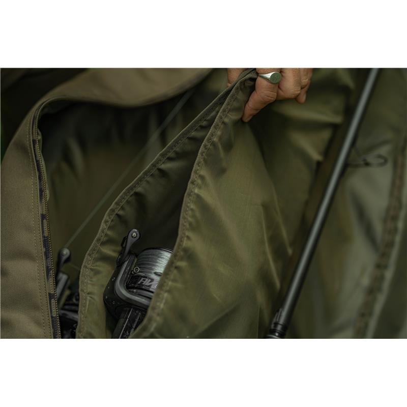 • kan drie hengels van 12ft/ 13ft bevatten met de grootste molens.