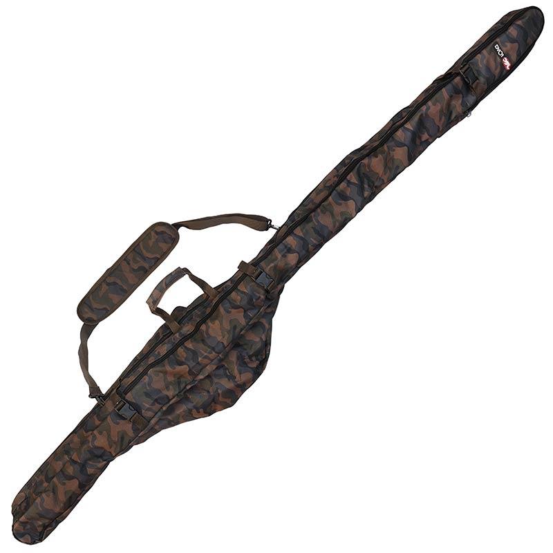 De hoes rova camo 2 is een dubbele, volledig gewatteerde hoes voor hengels en molens die uitstekende bescherming biedt voor je hengels, molens en andere stokken! Hij is ontworpen voor standaard 2-delige karperhengels (zonder telescoopmechanisme). De twee extra vakken kunnen tot vier hengels met bite-alarm en een landingsnet bevatten. Je kunt dus al je essentiële spullen meenemen. Voorzien van hoogwaardige ritsen, draagriemen en extra externe clips om ander bagage of een derde hengel vast te maken.