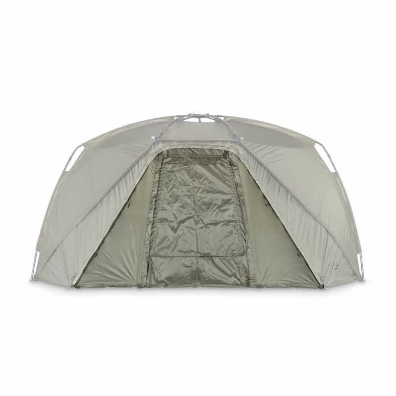 • de zijpanelen worden opgerold en vastgemaakt voor een snelle conversie van bivvy naar brolly