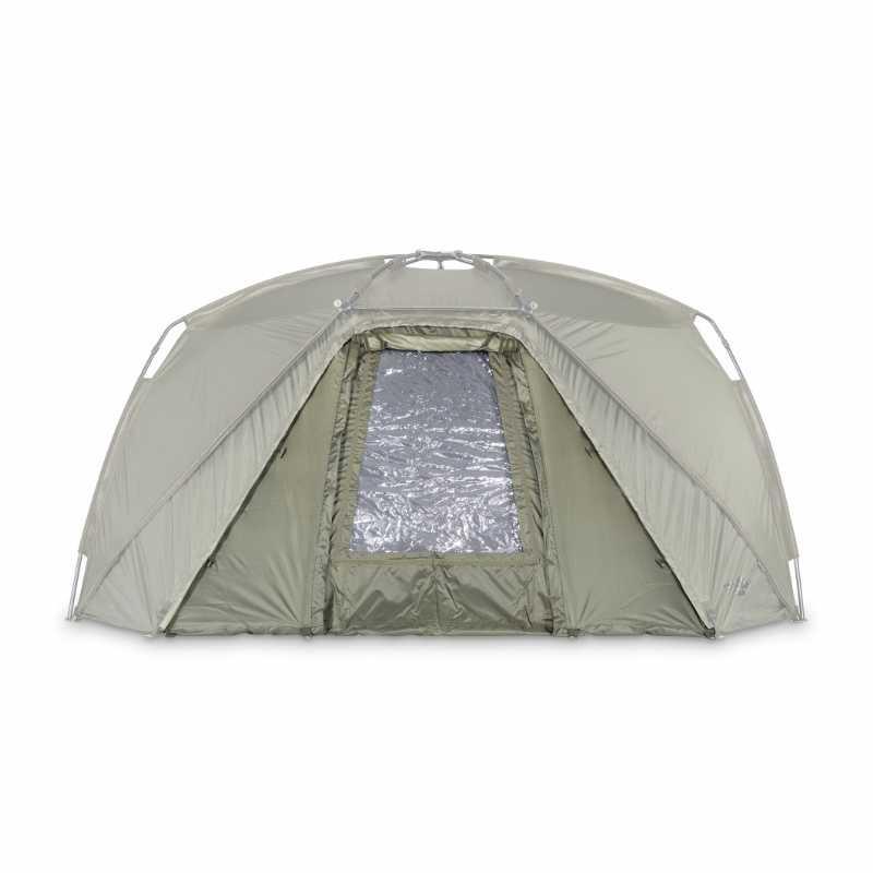 • de zijpanelen kunnen opgerold en vastgemaakt worden voor een snelle conversie van bivvy naar brolly