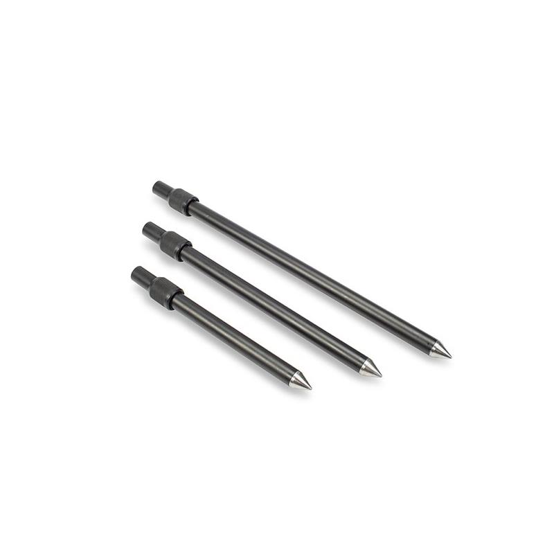 De Nash-pieken zijn gemaakt van hoogwaardig aluminium met een hoge compressie-sluitmechanisme voor een van de sterkste hengelsteunen. De maten 9,12 en 15 inch zijn uitgerust met roestvrijstalen punten voor duurzaamheid, terwijl de maten 28, 36 en 48 zijn uitgerust met aluminium schroefpunten om te bevestigen in de hardste gronden.