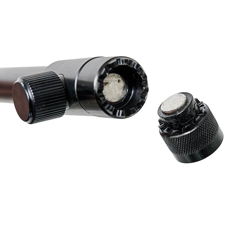 voorzien van een afneembare magnetische kop, stelt de magnet stick u in staat om in één seconde van accessoire te wisselen ( aangeefapparaat, hengelsteun, ....). deze prikstok met een diameter van 16 mm is uitgerust met een excentrische, niet-verliesbare klembout evenals een standaard 3/8 bsf schroefdraad die geschikt is om alle uitrusting op de markt te ontvangen ! vervaardigd uit een materiaal in mat zwarte kleur met buitengewone stevigheid en stijfheid, is de magnet stick verkrijgbaar in verschillende maten : 30cm , 50cm , en 80cm .