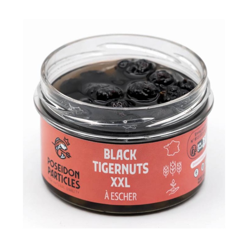 De Black Tigernuts XXL Poséidon in een pot zijn zwarte tijgernoten van XXL-formaat, speciaal geselecteerd en ambachtelijk bereid om een uiterst aantrekkelijk natuurlijk aas voor karpervissen te garanderen. Hun donkere kleur geeft ze een strategisch voordeel; ze onderscheiden zich van klassieke zaden en passen zich perfect aan slibrige of donkere bodems aan, waardoor de argwaan van karpers wordt omzeild.
