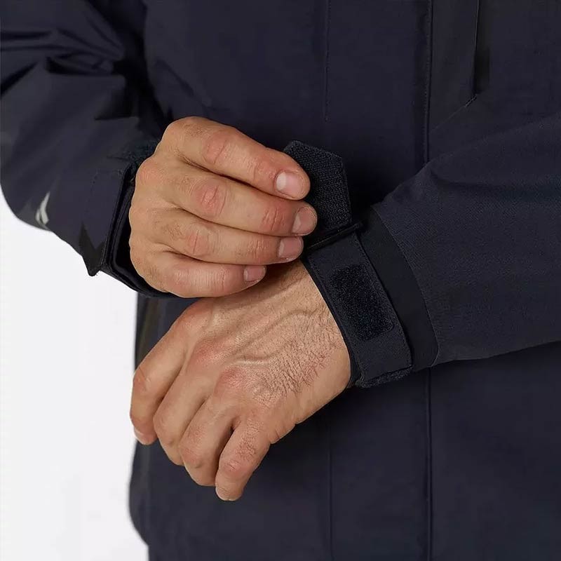 een ykk® aquaguard tweerichtingsritssluiting met magnetische stormflappen biedt extra bescherming tegen wind en regen. verstelbare lycra-manchetten voorkomen dat water binnendringt, terwijl drie waterdichte ritszakken (een borstzak en twee zijzakken) veilige opbergruimte bieden. een verstelbaar trekkoord in de zoom en een binnenzak met rits voegen praktisch gemak toe.
