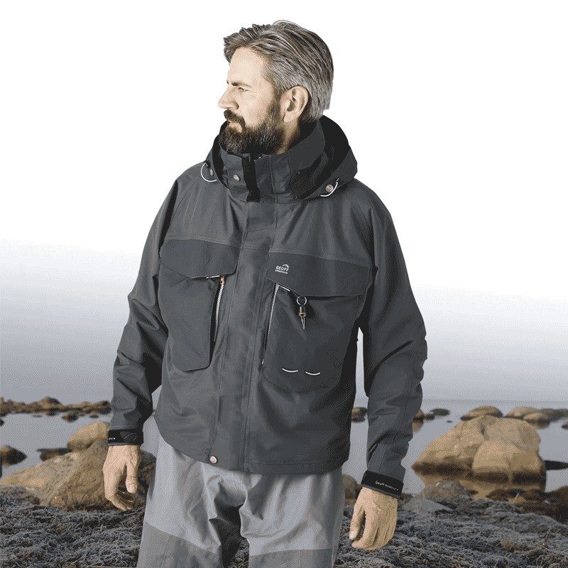 de vergrote ruimte bij de schouders en het ontwerp van de mouwen bieden optimale bewegingsvrijheid voor alle soorten worpen, of het nu vliegvissen of licht werpen is. de voering van de mouwen maakt het gemakkelijk de jas aan en uit te trekken en alle soorten worpen uit te voeren.