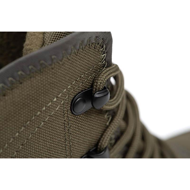 • Stevige kaki-laars • Perfect voor ruig terrein, vochtige omgevingen en lange wandelingen • Waterdicht membraan • Rubberen zool voor meer comfort • Metalen veterogen met klinknagels • Leren verstevigingen ter hoogte van de tenen en de hiel • Gewatteerde tong en kraag, gevoerd met fleece voor een betere ondersteuning van de enkel