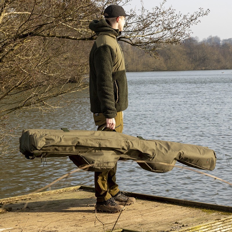 Het compacte model voor 5 hengels, drie boven en twee onder, is op maat ontworpen en biedt een royale pasvorm voor vijf volledig opgetuigde hengels van 12 voet. Zonder compromissen qua duurzaamheid zorgt de dubbele, robuuste rits voor snelle en gemakkelijke toegang tot uw hengels en molens. De verbrede topsecties, in combinatie met een interne vulling, bieden plaats aan K-series geleiders van 50 mm, waardoor uw hengels tijdens transport zorgvuldig beschermd zijn. Elke hengel wordt gescheiden door een gewatteerde interne hoes en op zijn plaats vastgezet met interne hengelriemen. Er is een extra riem en een elastische lus die gebruikt kunnen worden om uw boilie-werper op te bergen zodat ook deze van gewatteerde bescherming kan profiteren.
