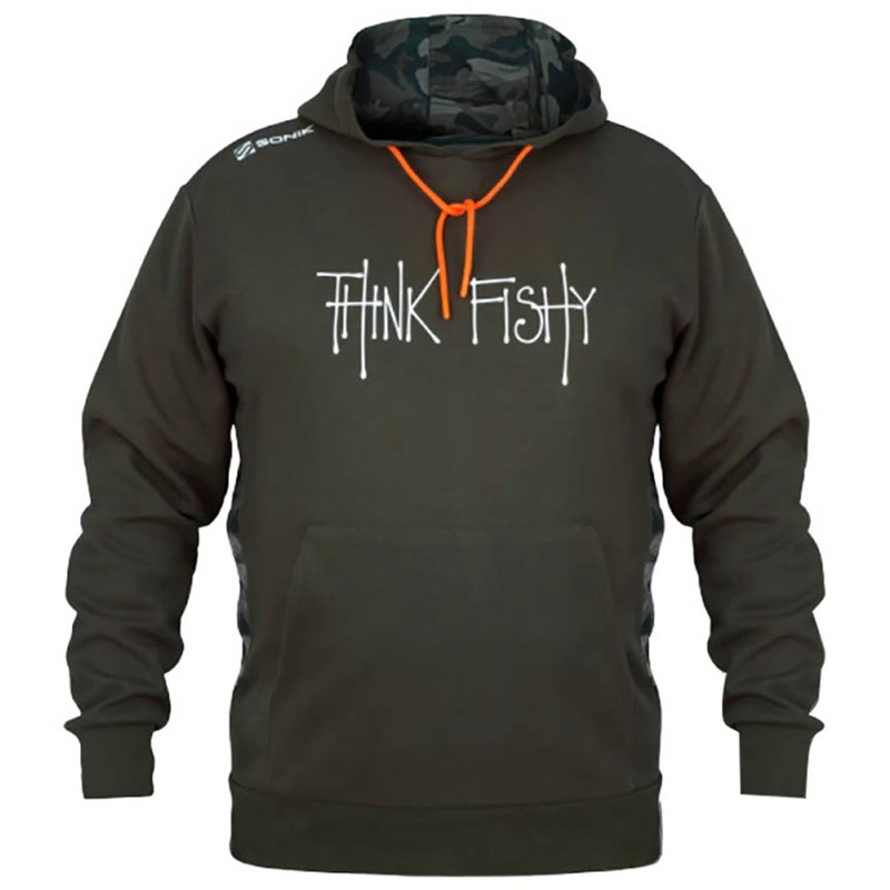 De hoodie SONIK by Think Fishy Art combineert comfort, stijl en een subtiele attitude en heeft een monochroom zwart camouflagepatroon aan de binnenkant van de capuchon voor een subtiel gedurfde toets. Gemaakt van een premium mix van 310 g/m² bestaande uit 80 % katoen en 20 % polyester, biedt hij warmte, duurzaamheid en een uitzonderlijk zacht gevoel. Deze co-branded hoodie is perfect voor vissers die hun passie willen uitdragen zowel aan de waterkant als in het dagelijks leven.