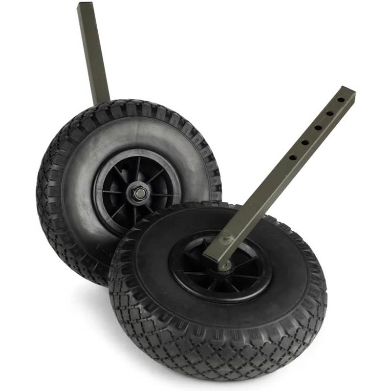 vervangt de meegeleverde verstelbare achterpoten door wielen - perfect voor vlakke ondergronden. compatibel met de nash trax karretjes: