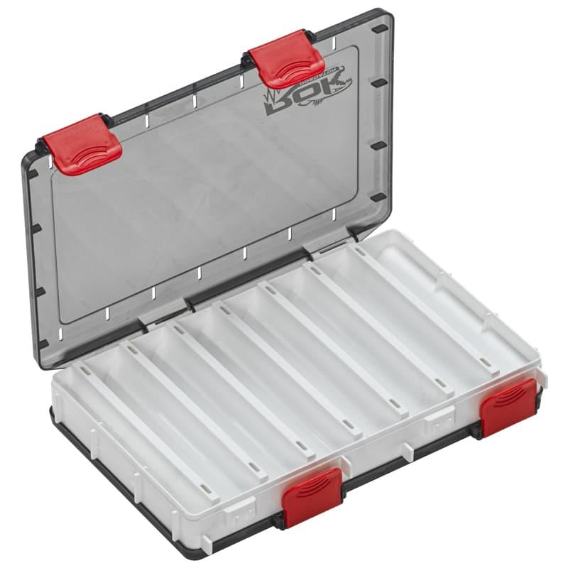 De DUAL SIDED LURE BOX 2140 is een compacte dubbelzijdige kunstaasdoos met afmetingen 19 x 14 x 3,7 cm. Met in totaal 14 compartimenten en perforaties voor waterafvoer is hij ideaal om veel kleine kunstaasjes op te bergen en het risico op corrosie te beperken. De witte kleur beperkt de temperatuurstijging, terwijl de getinte deksels een zeer doeltreffende anti-UV-bescherming bieden.