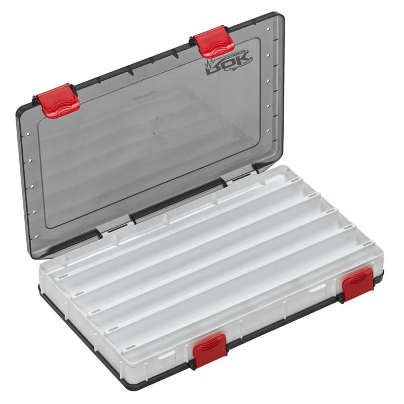 De DUAL SIDED LURE BOX 2140 is een compacte dubbelzijdige kunstaasdoos met afmetingen 19 x 14 x 3,7 cm. Met in totaal 14 compartimenten en perforaties voor waterafvoer is hij ideaal om veel kleine kunstaasjes op te bergen en het risico op corrosie te beperken. De witte kleur beperkt de temperatuurstijging, terwijl de getinte deksels een zeer doeltreffende anti-UV-bescherming bieden.