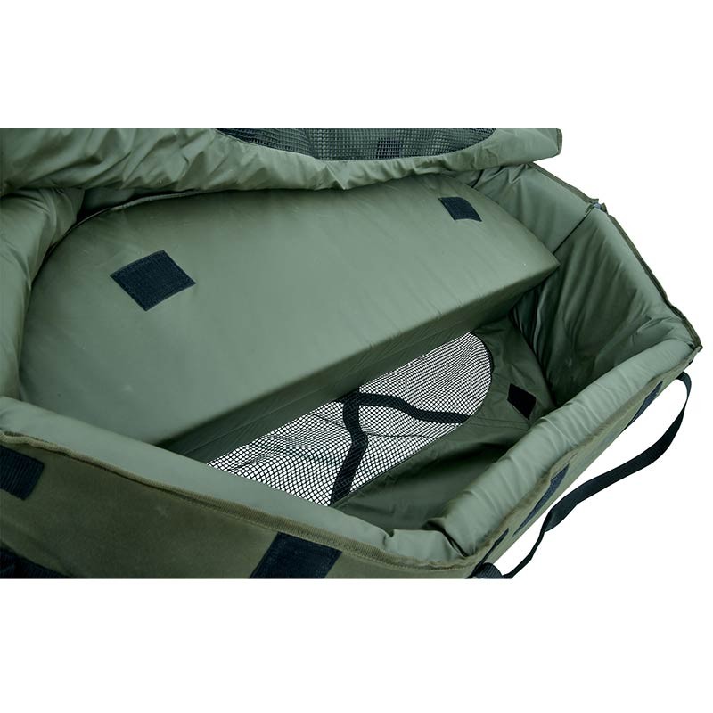Ontworpen voor veeleisende vissers die bekommerd zijn om het welzijn van hun vissen, garandeert deze extra beschermde opvangmat maximale veiligheid bij het hanteren van uw vangsten. Dankzij de stijve randen biedt hij optimale bescherming tegen schokken en plotselinge bewegingen. Het interne materiaal “soft touch” is speciaal geselecteerd om het beschermende slijmlaagje van de vis te behouden, terwijl de aanwezigheid van rubbergaas(rubberen mazen)) zorgt voor een snelle afvoer van het water. De doekflap met velcrosluiting voorkomt effectief dat vissen uit de mat springen. Praktisch: hij heeft aan elk uiteinde een ritssluiting, wat het terugzetten in het water onder optimale omstandigheden vergemakkelijkt. Zijn vulling van 50 mm hoge-dichtheid schuim zorgt voor optimaal comfort, zelfs voor de grootste vangsten, die u gemakkelijk kunt vervoeren dankzij de twee plastic handgrepen aan elk uiteinde. Ankerpunten op de grond zorgen voor stabiliteit, en het snelle drogen maakt hem nog functioneler in het veld. Compact en licht, wordt deze mat geleverd in een handige draagtas voor minimale ruimte-inname. Een opvangmat met hoge veiligheid voor optimaal comfort van uw vangsten.