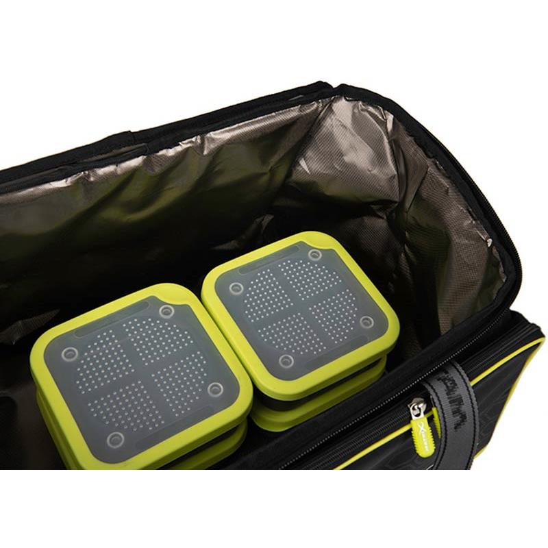 • capaciteit om 8 bakken met aas van 2,2 pt en materiaal te vervoeren