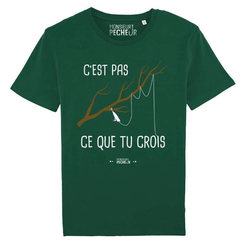 omdat we vaak de helft van onze tijd besteden aan het ontwarren van onze kunstaas, lepels, vliegen of lijnen die vastzitten in takken... wees trots om visser te zijn door dit t-shirt van het merk monsieur pêcheur te dragen om je vrienden aan het lachen te maken ! een heel goed cadeau-idee voor een visser met humor.