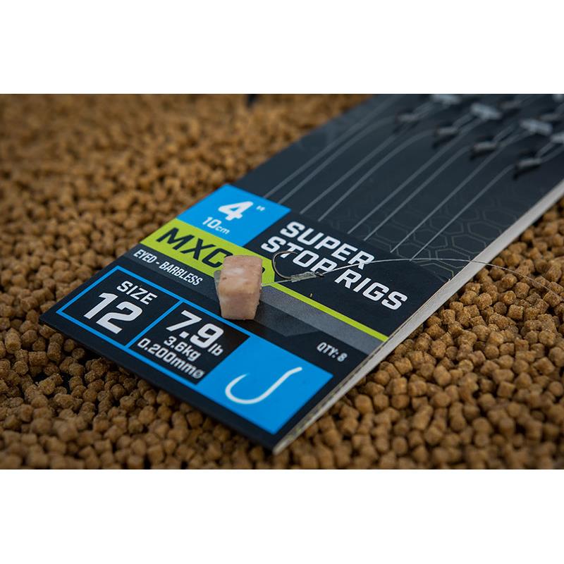 Kenmerken : • Ontworpen voor gebruik bij method- of pelletfeedervisserij • Ideaal om pellets en dumbells met elastiek te azen • Gebruiken MXC-3-haken met PTFE-coating en een uitstaand oogje voor een betere presentatie van het aas • Nauwkeurig gemonteerd op 10cm om in de Matrix Hooklengths Cases te passen • Zeer duurzame Matrix-elastiekbanden gemonteerd op een lus volgens de techniek van Jamie Hughes • Deze montage biedt een betere presentatie van het aas en verlengt de levensduur van de elastiekband • Gemonteerd op het nylon Power Micron • Verkrijgbaar in drie maten : - 12 – 0.20 (7.9lb / 3.6kg) - 14 – 0.18 (6.4lb / 2.9kg) - 16 – 0.16 (5.3lb / 2.4kg)