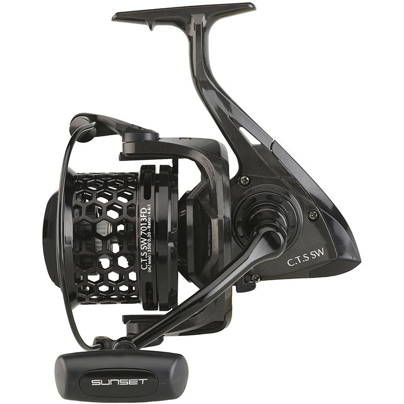 les moulinets sunset c.t.s fd - carbon team sunset - sont munis d’un corps et d’un rotor injectés en carbone, de treize roulements à billes, d’une bobine ajourée ultra légère en aluminium, d’une bobine ajourée ultra légère supplémentaire en aluminium, d’un frein avant micrométrique, de disques de frein en carbone, d’un anti-retour infinite stop system i.s.s, d’un galet surdimensionné afin de réduire le vrillage au maximum, d’une manivelle de combat ambidextre en aluminium et d’une poignée caoutchoutée.la version du moulinets sunset c.t.s fd 6013fd vous accompagnera aussi bien sur du surfcasting léger comme sur de la pêche en digue. la version 7013fd vous permettra quant à elle de pêcher en surfcasting lourd en loisir comme en compétition et d’accéder à des distances incroyables. l’adjonction de carbone dans le corps et le rotor offre au moulinet une rigidité parfaite lors des lancers appuyés ou lors des récupérations musclées. les rondelles de frein en carbone procurent un freinage ultra puissant, régulier et progressif idéal lors des combats avec les plus gros spécimens ! les 2 bobines en aluminium ultra légères munies de rondelles de frein en carbone sont également disponibles ainsi que le bouton de frein. disponibles en 2 tailles : 6013fd et 7013fdpour remplir vos bobines, pensez au monofilament nouvelle génération rs compétition « spécial moulinet » long distance ou ultra power !
