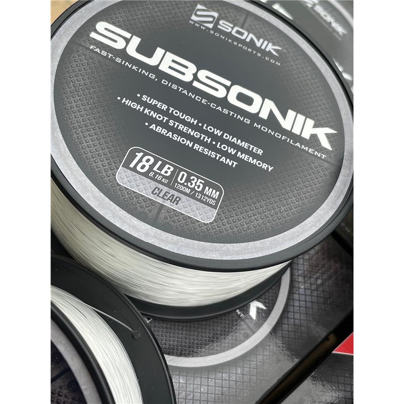 subsonik is een hoogtechnologische, supergladde monofilamentlijn, ontworpen voor de karpervisser die het beste eist. Hij is geformuleerd met een complex extrusieproces dat maximale sterkte garandeert met een beperkte rekfactor en is ontworpen om snel te zinken, waardoor detectie door vis wordt geëlimineerd.