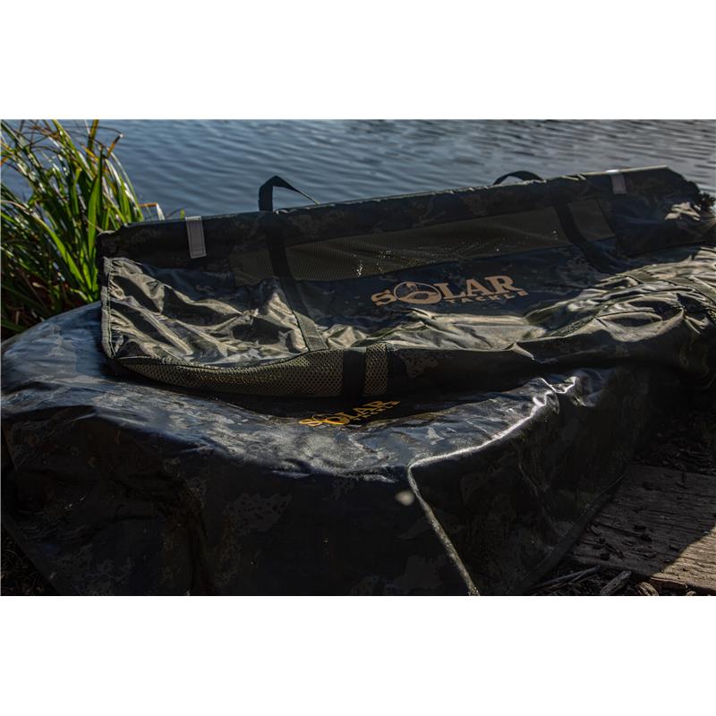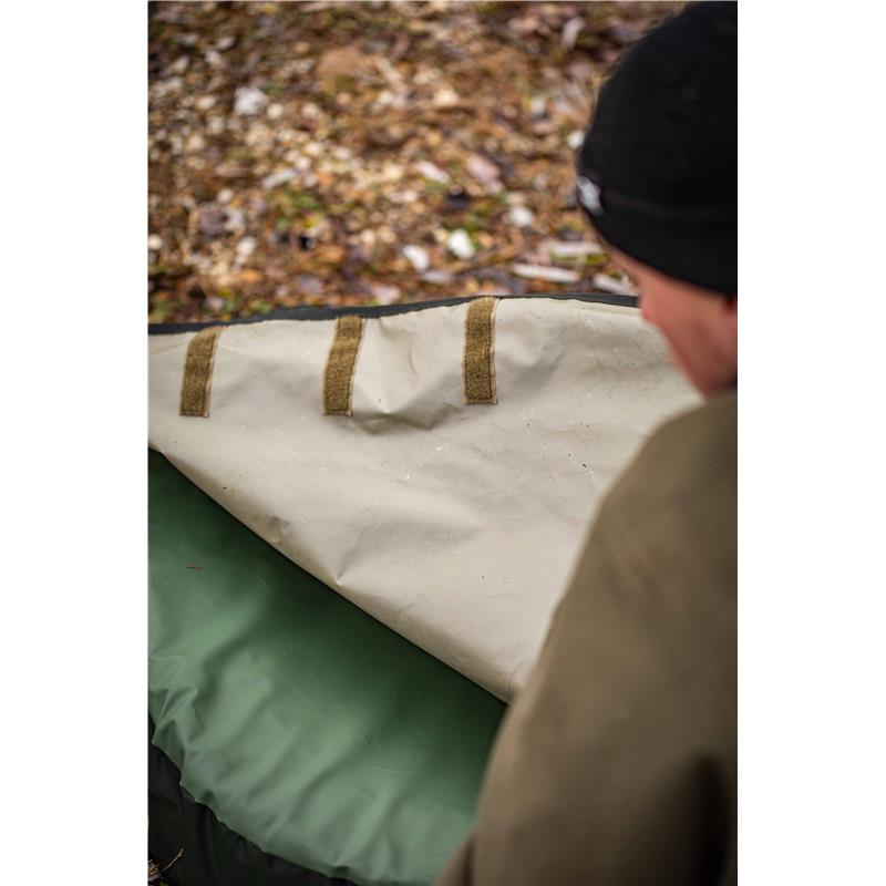het matje van hogedichtheidsschuim is gevormd en heeft een opstaande rand rondom om te voorkomen dat vissen wegschuiven. een versterkte en waterdichte onderkant, bevestigingspunten, dubbele draaghandgrepen en de extra grote hoes undercover camo (aan één kant aan de mat bevestigd en met klittenband aan de andere drie, vormen een welkome aanvulling op ons karperverzorgingsassortiment.