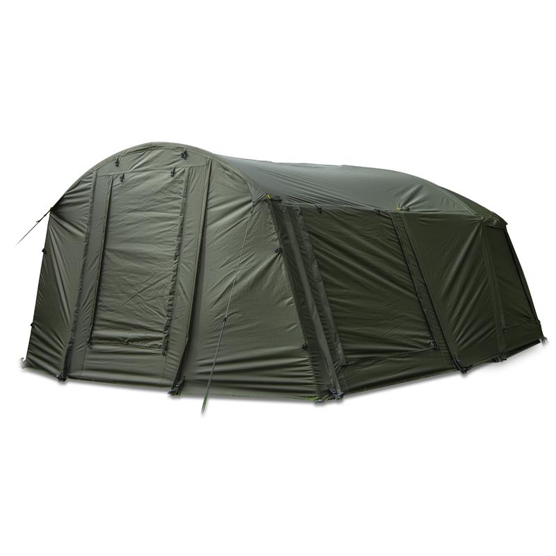 een ruim overzeil voor de biwys sp en south westerly pro uni spider van solar, dat een dubbele huid en een luifel van 1,20 m aan de voorkant creëert, perfect voor opslag en koken, en elk van de uni spider biwy-modellen omzet in een perfect onderkomen voor langdurig verblijf.