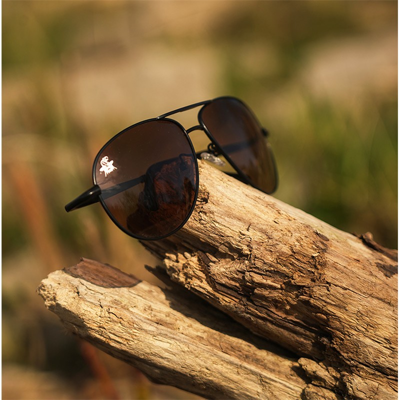 Kenmerken : • Montuur in metaal, pilotenstijl, gunmetalgrijze afwerking • TAC-lenzen schokbestendig, gepolariseerd, bruin van kleur • UV400-bescherming. Geleverd met een harde EVA-beschermhoes en een microvezelpoetsdoekje • Hoogwaardige vervaardiging • Black Cat-markering