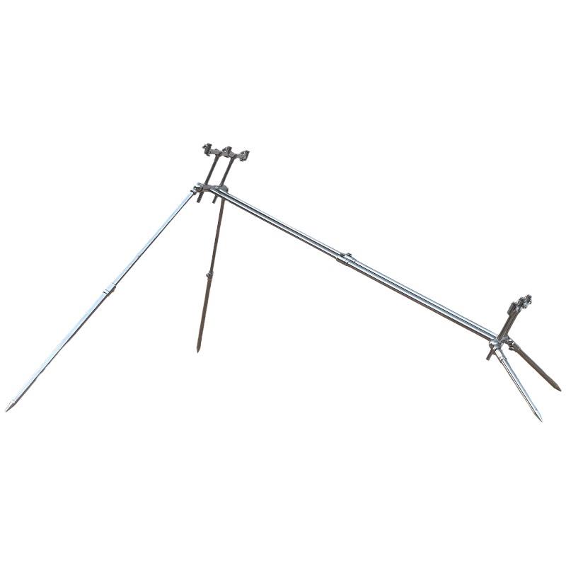 Nieuwe rod pod van extreem sterk en stabiel roestvrij staal voor 3 hengels, die zal voldoen aan de eisen van de meest veeleisende karpervissers. Elk deel van de rodpod is intrekbaar. De Rodpod bevat snelle connectoren voor de beetmelders. Dit versnelt het proces van het demonteren en monteren van de standaard. Elk been kan individueel worden gedraaid en kan 360° draaien. Dit maakt een flexibele aanpassing van de standaard op elk terrein mogelijk. Het kan zowel op privé wateren als op dammen worden gebruikt.
