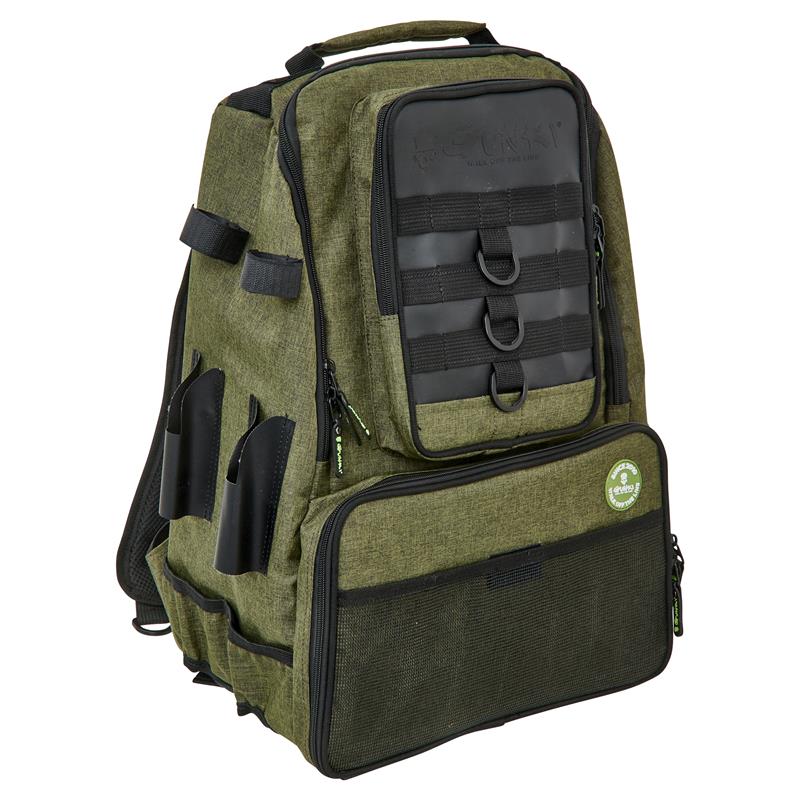 Een rugzak voor de grote 'bagage', gemaakt voor natuurliefhebbers die evenveel visser als wandelaar zijn. Geschikt voor 'lange tochten', deze GUNKI OVERTAKE FULLTRECK rugzak is ontworpen om vistuig rationeel op te bergen en te organiseren. Maar vooral maakt hij het mogelijk om alle andere onmisbare accessoires mee te nemen om op verschillende situaties te kunnen inspelen (extra kleding, reservehengels, voedsel, drinkfles...etc). Zeer comfortabel door zijn ergonomie die perfect aansluit op de rug en door de toevoeging van gewatteerde verstevigingen; hij is gemaakt voor lange wandelingen. De ondersteuning is betrouwbaar, verzekerd door twee brede, gewatteerde schouderbanden, beveiligd door een verstelriem ter hoogte van het borststuk. Talrijke 'D'-ringen zijn toegevoegd om accessoires te bevestigen en/of te beveiligen. Wordt geleverd met drie dozen 31,5x23x5cm.