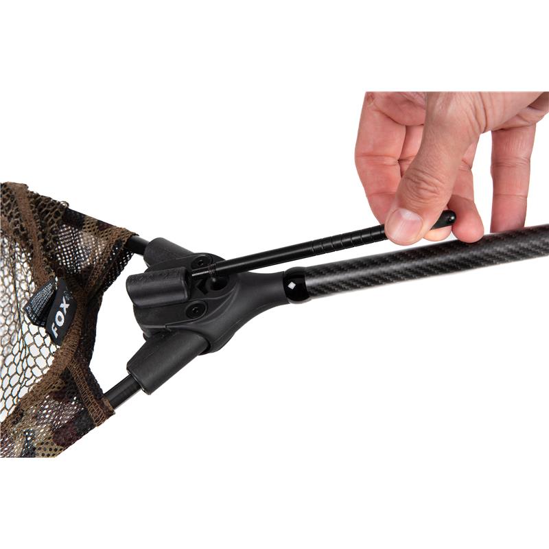 De ultieme oplossing voor eenvoudig monteren en demonteren van het schepnet. Centraal in het ontwerp staat een uniek nylon spreidblok gevuld met gevormde glasvezel en voorzien van een afneembare hendel. U duwt simpelweg de hendel om de armen te openen of trekt eraan om ze te vouwen, waardoor montage en demontage snel, gemakkelijk en foutloos verlopen. De armen van het schepnet zijn uitgerust met magnetische hulzen die stevig in het spreidblok schuiven. Eenmaal op hun plaats kan de hendel met één hand eenvoudig worden bediend om de armen stevig in positie te vergrendelen. Voor meer veelzijdigheid kan de hendel stevig in het spreidblok worden geschroefd om een retentiefunctie te creëren wanneer deze wordt gebruikt met de steun of de retentiekraag van de stormmast. Deze kraag past perfect in de Fox Camlok-houders en stormmasten. Ze vergrendelen stevig. De 2K carbonmast heeft een ontwerp met verminderde coniciteit, wat de flexibiliteit verhoogt en tegelijkertijd uitzonderlijke stijfheid garandeert. De handgreep biedt betere grip en een RVS-uiteinde zorgt voor duurzaamheid. Het camouflagennet voltooit het premiumontwerp en combineert prestaties met stijl. Verkrijgbaar met armen van 42 pouces, gecombineerd met óf een eendelige mast van 6 pieds, óf een tweedelige mast van 8 pieds.