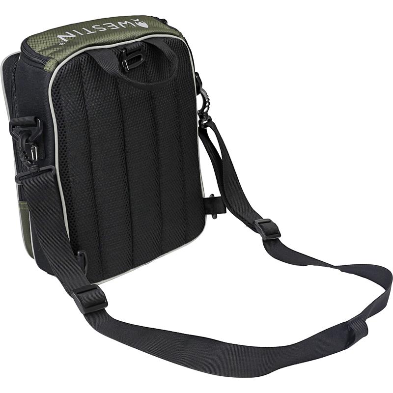 W2 Street Bag - uw ideale metgezel voor vissen in de stad! Deze compacte en stijlvolle tas is ontworpen om uw essentiële spullen op te bergen. Hij wordt geleverd met een Westin opbergdoos voor kunstaas van klein en middelgroot formaat. Met zijn elegante ontwerp en duurzame materialen kan deze tas gedragen worden als een kleine rugzak of als schoudertas over één schouder.
