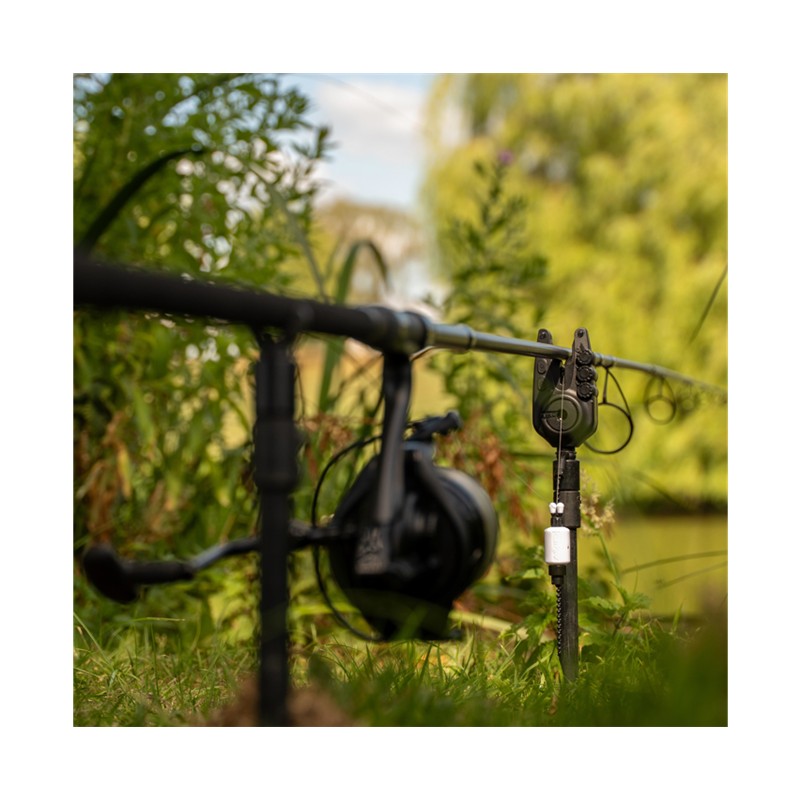 • kenmerken van de detector : knoppen regelen het inschakelen en de led-instellingen, met drie instelwieltjes om het volume, de toon en de gevoeligheid te verfijnen. het ontwerp met rubberen inzetstukken compatibel met hengels zorgt voor bevestiging en stabiliteit onder alle omstandigheden. een stijf 3/8" koppel zonder torsie met een geribbeld vergrendelingscollier en een rubberen afdichting zorgt voor een stevige en anti-rotatie montage.