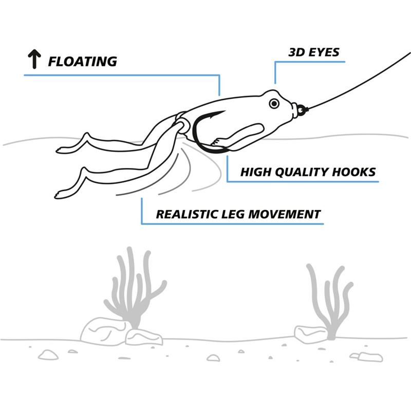 duik in de fascinerende wereld van het oppervlaktevissen met onze gloednieuwe top frog! dit kunstaas is speciaal ontwikkeld om het uiterlijk en de bewegingen van een kikker perfect na te bootsen en zo je kansen op succes te maximaliseren. de 3d-ogen en de realistische poten geven het kunstaas een levendige en onweerstaanbare uitstraling die snoeken uit hun schuilplaatsen naar boven zal lokken. gemaakt van duurzaam en milieuvriendelijk pvc. een must in elke doos met kunstaas! vis overal en ga moeiteloos door waterplanten, waterlelies en riet heen. want juist daar loeren roofdieren op hun prooien. verkrijgbaar in 4 geteste & goedgekeurde kleuren.