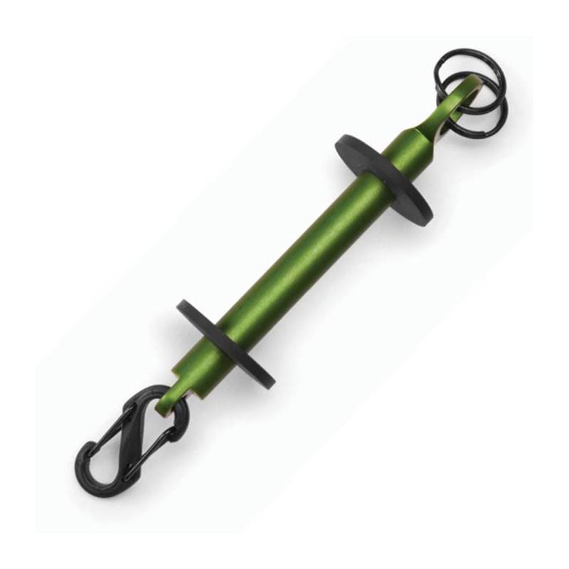 spoelhouder van geanodiseerd aluminium - voorzien van ophangkarabijnhaken - rubberen bevestigingsschijven - maakt het mogelijk 6 spoelen lijn orvis op te bergen