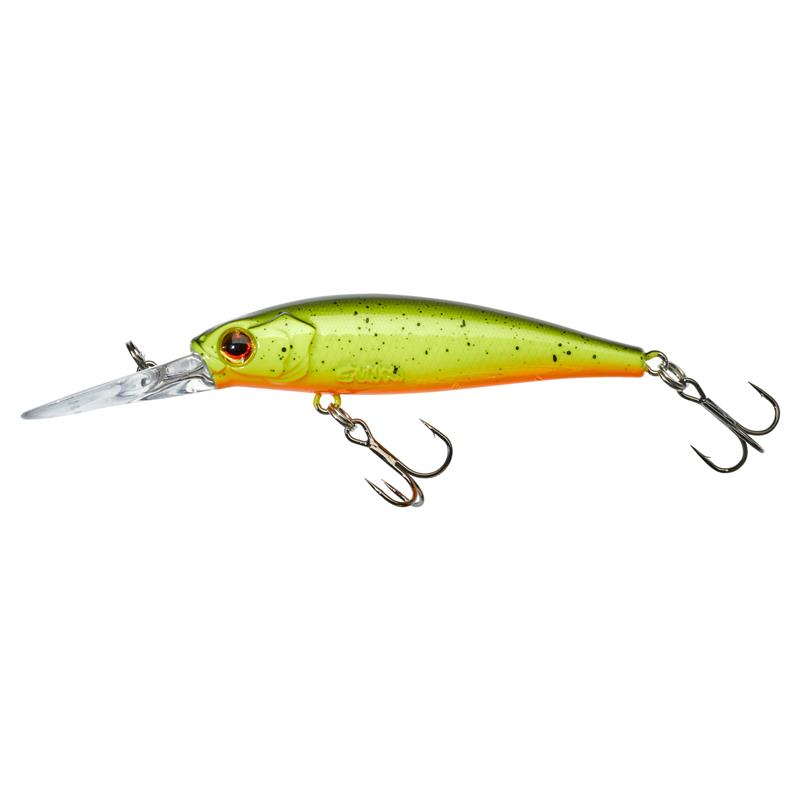 Behorend tot de laatste generatie harde lokmiddelen ontwikkeld door GUNKI, is de KNIFEHEAD een ‘longbill minnow’ die ver werpt! Zijn massaoverbrenging in wolfraam wordt door een magneet in het kunstaas vastgehouden. Bij de worp wordt deze losgelaten, wat een katapult-effect aan het kunstaas geeft en het op grote afstand in een rechte, stabiele positie voortstuwt. Verkrijgbaar in prachtige kleuren, zwemt hij bij alle inhaalsnelheden dankzij zijn precieze ontwerp en perfecte balans. Deze nieuwe GUNKI ‘longbill minnow’ is uiterst veelzijdig. Hij reageert op de kleinste «twitch», haakt niet uit ongeacht de inhaalsnelheid en «stopt» onmiddellijk bij pauzes. Verkrijgbaar in DR-versie (= Deep Runner), zakt de KNIFEHEAD 68SP-DR snel om zijn duikdiepte te bereiken. Een onmisbare troef bij langzaam en nauwkeurig vissen op baarzen en snoekbaarzen die tegen de bodem liggen. Bij zomerse openwatervisserij beperkt zijn slanke vorm afwijzingen, zeker als het water helder is. Maat 68 wordt aanbevolen in kleinere wateren en rond scholen jonge vis. Zijn verhoudingen zijn aangepast aan de gebruikelijke prooien van snoekbaarzen en baarzen. Zorg dat je toch een klein voorslagje bij je hebt. Afhankelijk van de omstandigheden en het seizoen zijn snoeken er dol op en richten ze zich uitsluitend op kleine prooien van dit formaat!