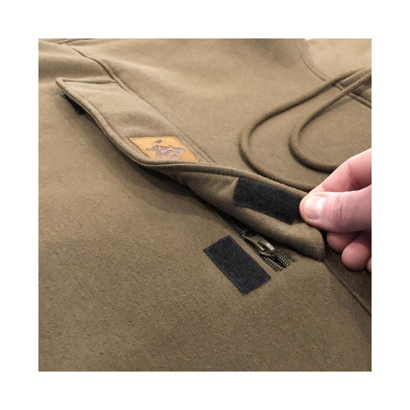 Presentatie van de nieuwe Vass-Culture capuchontrui met een borstzak met ritssluiting, zakken voor de handen, een dubbele capuchon en een boord in geborsteld fleece voor extra warmte en comfort. De borstzak met rits is ontworpen om voorwerpen veilig te bewaren (sleutels, telefoon, enz.) tijdens actief vissen en is ideaal gepositioneerd om te gebruiken wanneer u waders draagt.