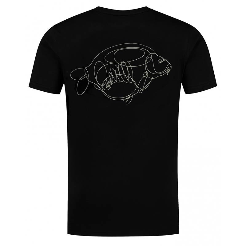 Dit t-shirt ontleent zijn naam aan het unieke ontwerp op de rug. De afbeelding van een karper is er met één enkele lijn getekend, wat een opvallende weergave van een spiegelkarper oplevert.