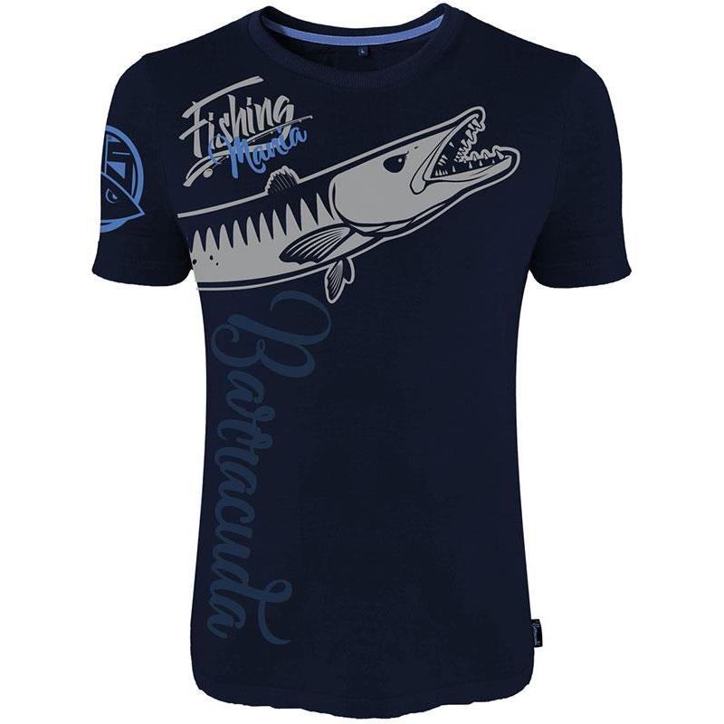 Heren T-Shirt Met Korte Mouwen Hot Spot Design Fishing Mania Barracuda - Marineblauw