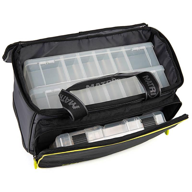 • een kleinere doos voor feeders / accessoires in het voorvak met rits