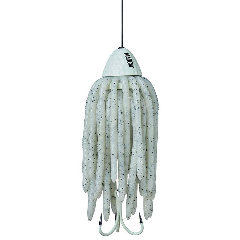 clonk teaser die een tros wormen imiteert, te gebruiken in combinatie met echte wormen. ook geschikt voor pelagische meervalvisserij. de afstand tussen de drielinghaak 4x en de teaser kan gemakkelijk worden aangepast (afhankelijk van de vistechniek, het gedrag van de vis of de persoonlijke voorkeuren van de visser). de kop heeft een oppervlak in de vorm van een golfbal voor meer turbulentie. de onderlijn in kevlar, 35 cm lang, heeft een dikte van 1,00 mm en een treksterkte van 220 lb. gerubberd, dus super a-statisch.