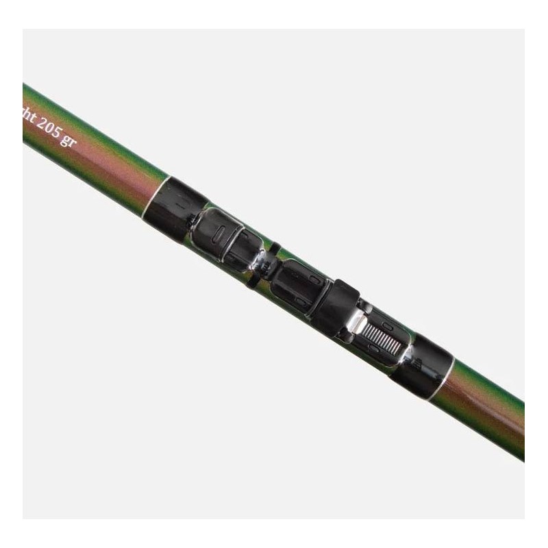Bij de aanbeet is de actie van de hengel krachtig maar progressief om de juiste elasticiteit te bieden zodat de vis zich niet lost en de vangst wordt vergemakkelijkt. De details zijn verzorgd met een antislipafwerking op de handgreep en de butt. Molenhouder met tandwielvergrendeling en Seaguide enkelfoot-ringen voor meer lichtheid. Televerstelbare ringen om de lengte van de hengel aan te passen aan de behoeften van de visser en aan de visserijactie.