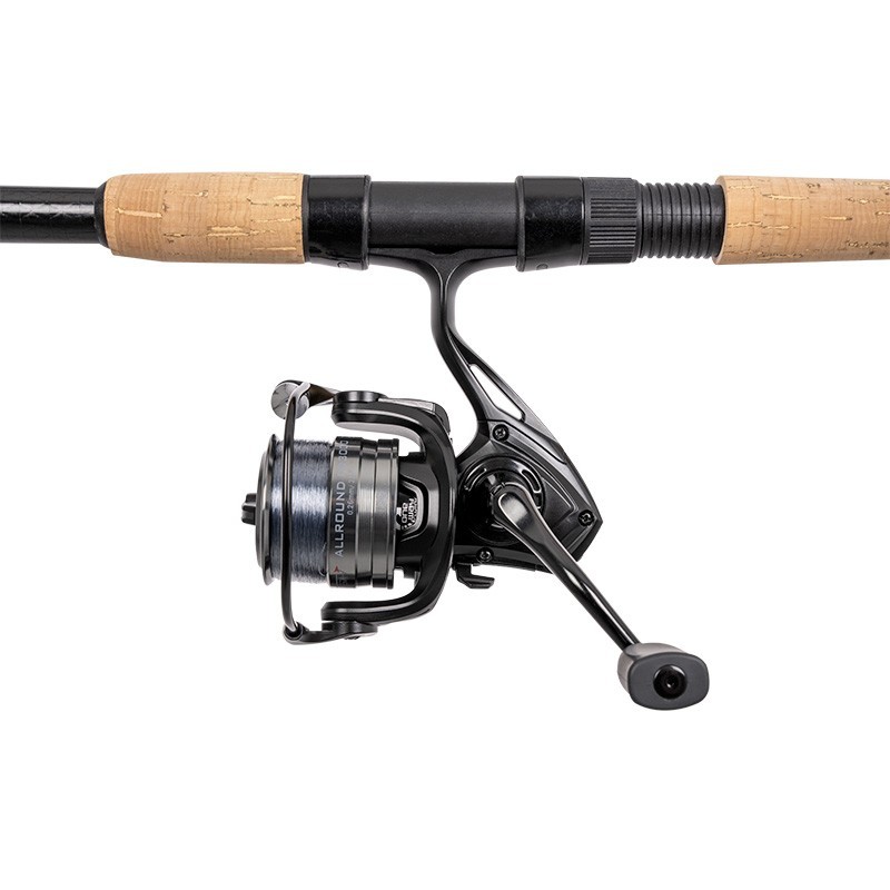 Kenmerken : • De Allround-set bestaat uit een telescoophengel van 3 m • Een werpgewicht van 20-70 g en die een zeer mooie progressieve actie heeft. • De hengel is voorzien van een kurken handgreep en van aluminiumcomponenten in gunsmoke om hem een elegant design te geven. • De hengel wordt geleverd met een vrijloopmolen Target Fish 3000 • 3+1 kogellagers, • Een aluminium spoel en slinger, • Een pick-up van goed formaat en een rubberen handgreep. • De molen is voorzien van khaki nylon Target Fish van 0,30 mm. • Ratio 5.2 :1. • Spoelinhoud 0,30mm/180m. • Maximale remkracht 5.5kg. • Inwinding per omwenteling van de slinger 780mm.