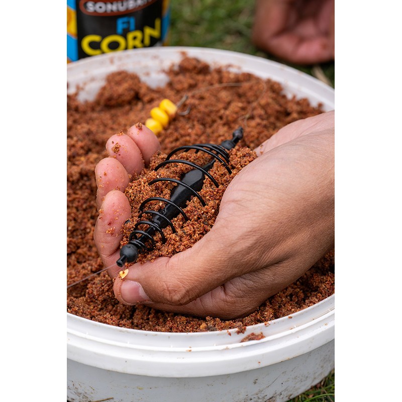 Klassieke verzwaarde feeder met een specifieke vorm om uw lokvoer samen met uw aas gemakkelijk in de feeder samen te drukken.