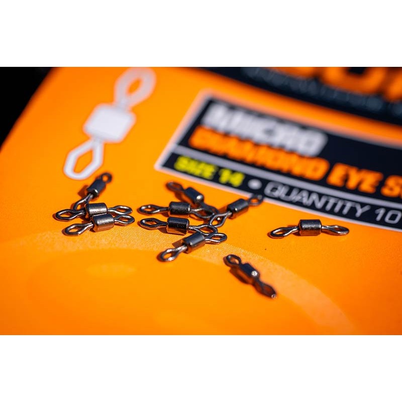 Of u nu op delicate soorten vist of grotere vissen als doelwit heeft, de Micro Diamond Eye Swivel biedt ongeëvenaarde betrouwbaarheid, soepelheid en duurzaamheid, en garandeert een nette en discrete verbinding met uw montage.