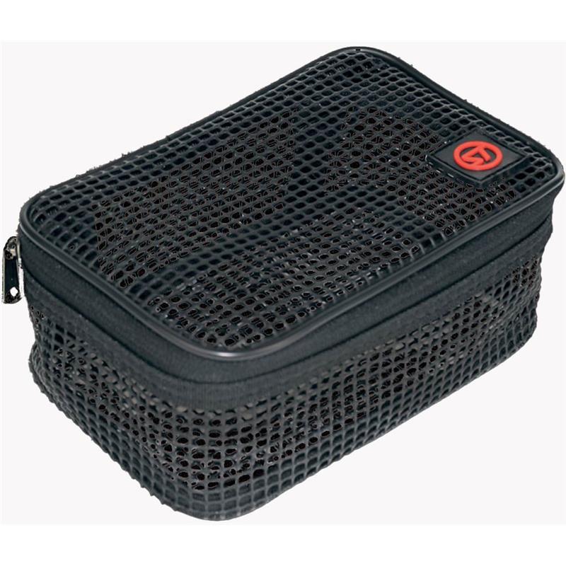 De Mesh Case is een etui van rubbergaas om uw kleine materiaal te vervoeren, zoals uw lijnspoelen, uw tangen of enkele kunstaasjes. De Mesh Case is daardoor uiterst sterk, wasbaar en droogt zeer snel. U kunt uw materiaal dus direct in het etui afspoelen en laten drogen. Bovendien maakt de transparantie het mogelijk om de inhoud in één oogopslag te zien, wat erg praktisch is wanneer u er meerdere in een grote tas plaatst; u hoeft daardoor niet elk etui te openen om het materiaal te vinden dat u zoekt. Het rubbergaas maakt het zelfs mogelijk om kunstaas met haken op te bergen zonder dat de haken blijven vastzitten.