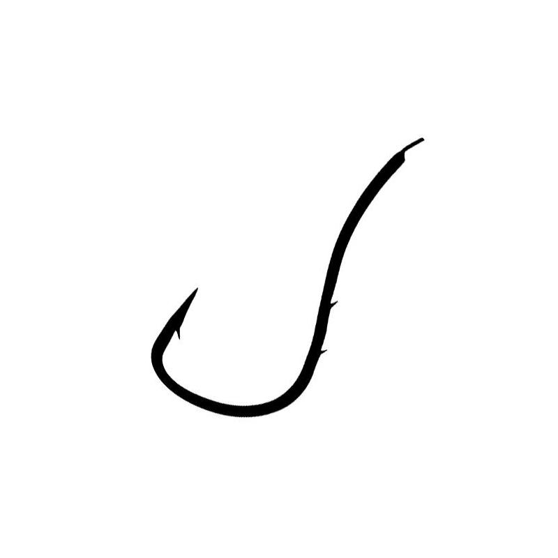 Gesmede platte haak met twee omgekeerde weerhaken op de schacht waardoor de worm beter blijft zitten (voorkomt het samendrukken in de kromming tijdens het werpen) Bijzondere vorm (gebogen schacht speciaal aanbevolen voor platvissen Punt cutting point.