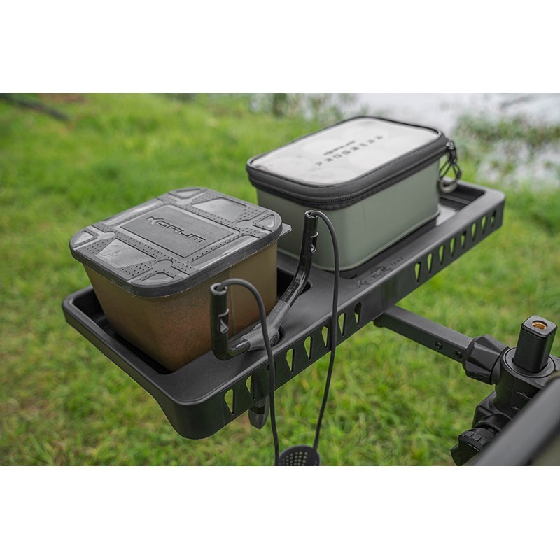 Dit zijplateau, compatibel met Blox-dozen en aasbakken, is de ideale metgezel aan de waterkant en houdt uw essentiële accessoires binnen handbereik op een stabiele en verstelbare houder.