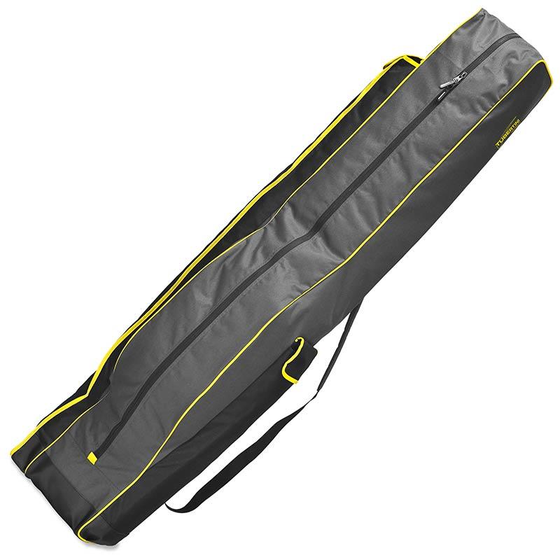 Hengeltas voor surfhengels. Twee modellen die te herkennen zijn aan het verschillende aantal centrale compartimenten, met één of twee ritsen, terwijl beide twee extra zijvakken hebben voor diverse uitrusting. Met gewatteerde schouderbanden voor gemakkelijker transport.